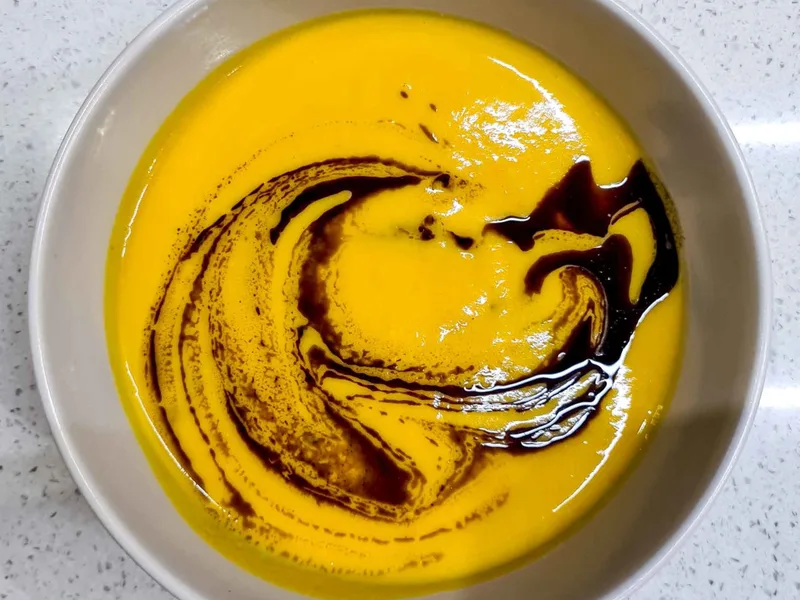 A silky, naturally dairy-free pumpkin soup that balances autumn warmth with bright fruit undertones. Sweet roasted pumpkin and caramelized leeks form the savory base, while a ripe pear adds subtle sweetness and floral notes. Almond milk and almond butter create richness without dairy, while pumpkin seed oil drizzled over each bowl delivers nutty depth and visual appeal. The optional Hokkaido pumpkin keeps its nutritious skin in the pot, adding earthiness. Perfect for gluten-free and vegan diets, this soup suits cozy fall dinners, elegant first courses, or meal-prep lunches. What sets it apart is the pear—rarely seen in pumpkin soup—softening just before blending to integrate seamlessly rather than float as chunks. The result feels restaurant-quality yet simple enough for weeknight cooking.