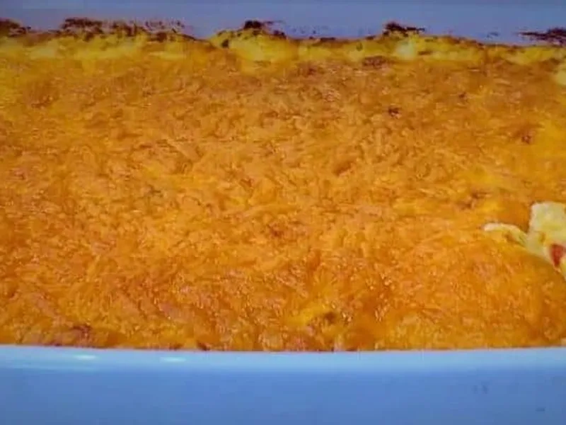 Tomato Grits with Rustlin' Rob's Southern Yellow Grits is a savory, comforting casserole that combines creamy stone-ground grits with melted cheddar and Velveeta cheese, diced tomatoes with green chilies, and sautéed green onions. This dish delivers rich, cheesy depth balanced by bright tomato acidity and the subtle heat from Ro-Tel, creating layers of flavor and a luxurious creamy texture. The combination of two cheeses—sharp cheddar and processed Velveeta—ensures silky consistency while building savory complexity. Best suited for potluck dinners, holiday sides, or casual weeknight suppers, it's especially popular in Southern and Southwestern tables. This baked casserole version enhances simple grits into a complete side dish that holds heat beautifully and feeds a crowd, distinguishing it from stovetop preparations by adding structural integrity and a golden cheese-topped finish.