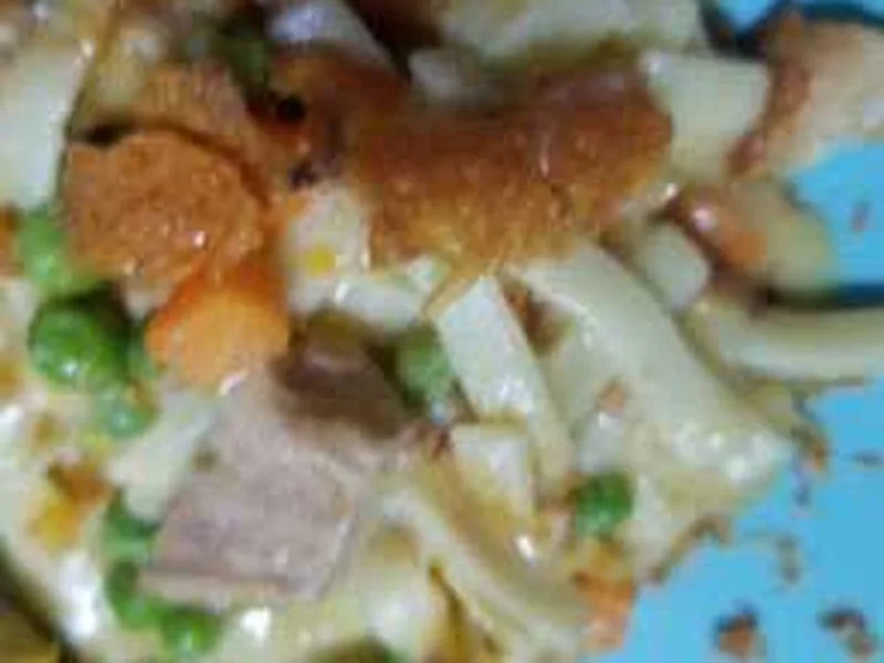 A classic midcentury casserole combining tender egg noodles, flaked tuna, and sharp cheddar in a creamy mushroom sauce, finished with a crispy fried onion topping. The dish balances comfort and nostalgia: soft textures from the noodles and peas contrast with the crunchy, savory onion crust. Sweet frozen peas and umami-rich tuna and cheese create depth, while French's fried onions add both texture and subtle garlic notes. Ideal for weeknight dinners when you need something filling and satisfying without fuss. Serve to families seeking straightforward, budget-friendly meals or at potlucks where retro casseroles are celebrated. This version honors the original recipe's simplicity while maintaining the creamy, hearty character that made tuna noodle casserole an American staple for decades.