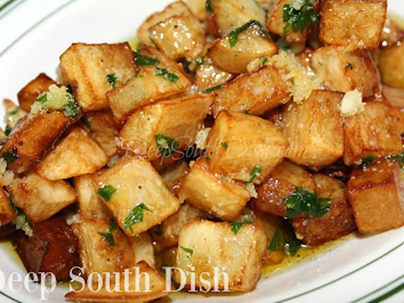 Crispy exterior, tender interior potato cubes finished with aromatic garlic butter and Creole seasoning. A Deep South Louisiana preparation that transforms simple russets into a restaurant-quality side. The parboiling step ensures the center cooks through while the deep fry creates crackling brown edges. Serve alongside grilled seafood, chicken, or as a showstopping appetizer for casual entertaining. This version balances the richness of butter with fresh parsley brightness and warming Cajun spice.