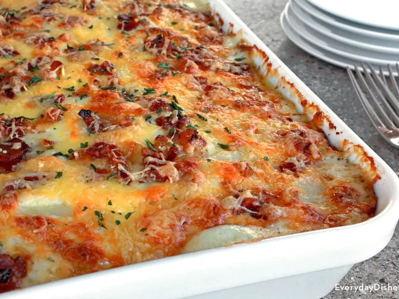 Crispy Bacon Gouda Potato Gratin with Creamy Sauce