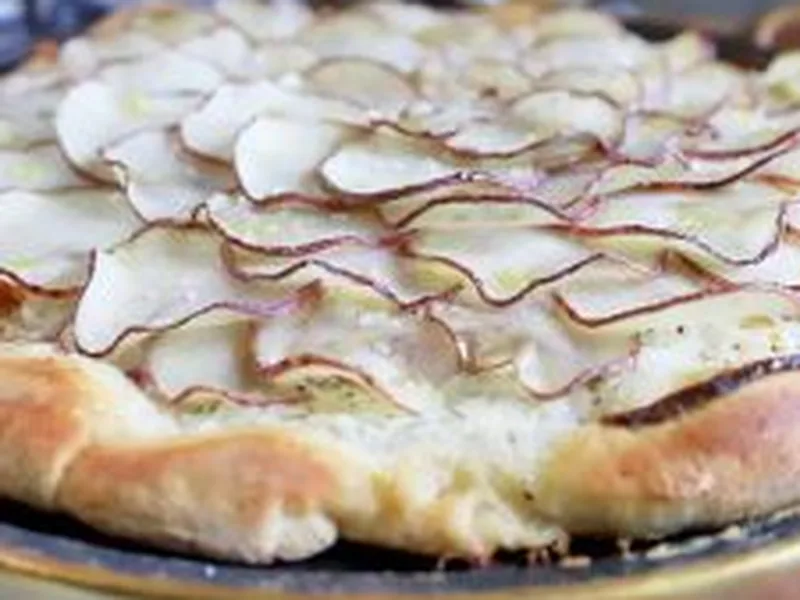 A sophisticated take on white pizza that swaps traditional cheese for a creamy ricotta and creme fraiche base, topped with crispy bacon, sweet caramelized onions, and thinly sliced potatoes. The potatoes become tender and slightly crispy at the edges, while the bacon adds smoky depth. Perfect for a casual dinner party or weeknight meal. This version prioritizes texture contrast: creamy base, crispy bacon, tender potatoes, and a sturdy dough crust.
