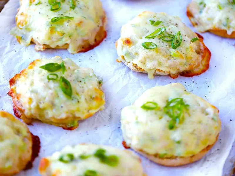Classic open-faced tuna salad sandwich topped with melted cheese and broiled until bubbly. Creamy tuna salad made with celery, green onions, and sweet relish is spooned onto toasted English muffins, then crowned with provolone and baked until the cheese browns. Perfect for quick lunches, light dinners, or meal prep. This version keeps the salad separate until assembly, preventing soggy muffins while allowing customization.