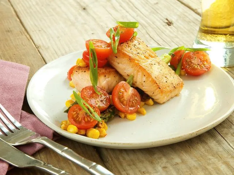 Crispy Pan-Seared Salmon with Corn Succotash