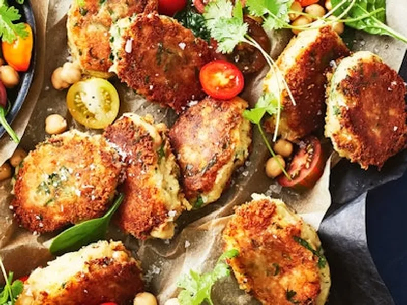 Prawn kofta are Middle Eastern-inspired patties that blend tender mashed potatoes with succulent chopped prawns, fragrant ginger, coriander, and warming cumin. The mixture is shaped, coated in flour, and pan-fried until golden and crispy on the outside while remaining moist within. Served alongside a vibrant, no-cook chickpea salad loaded with fresh spinach, tomatoes, and bright lemon juice, this dish delivers contrasting textures and bold flavors. Perfect for weeknight dinners or casual entertaining, prawn kofta suits anyone seeking a quick, protein-rich meal that feels restaurant-worthy. The combination of crispy exterior and tender potato-prawn interior, paired with the fresh, zesty salad, makes this version stand out from heavier meat-based kofta. Serve warm as a main course with flatbread or rice to soak up the salad dressing.