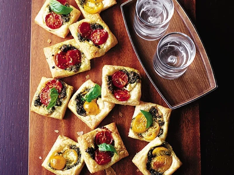Crispy Puff Pastry Squares with Goat Cheese and Pesto