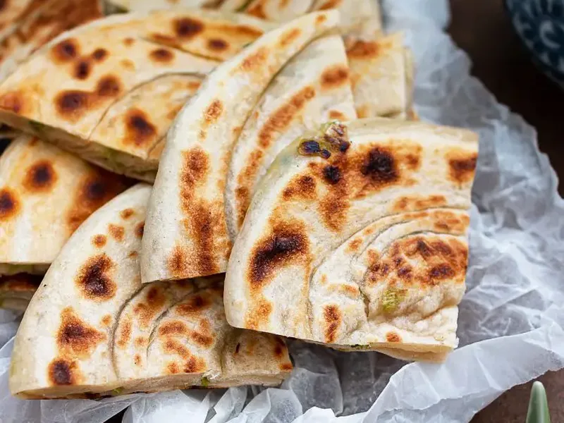 Cong you bing are golden, flaky Chinese street food pancakes layered with fragrant scallions, sesame oil, and olive oil. The dough is kneaded until silky, rested to develop gluten, then rolled thin, filled, coiled, and pan-fried until crispy and blistered. Serve warm as an appetizer, snack, or alongside soups and stews. This version uses both olive and sesame oils for richness and authenticity, creating a balance of crispness and tenderness that makes each bite satisfying.