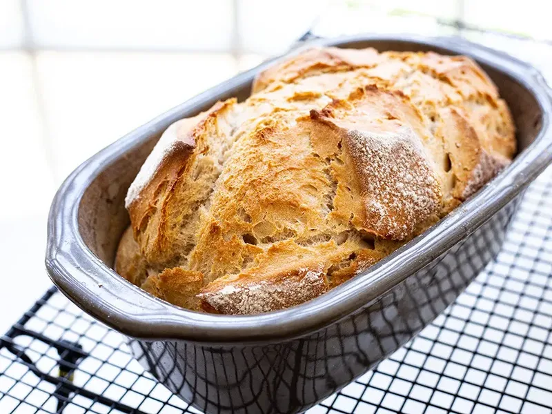 Serve warm or at room temperature. Pair with soups, stews, cheese, cured meats, or preserves. Excellent for sandwich-making once cooled.