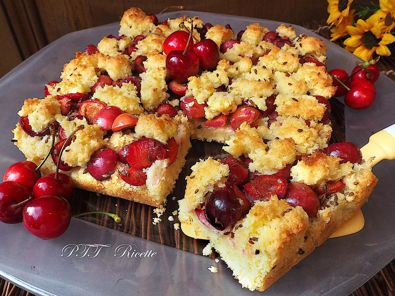 Italian tart with a tender coconut-enriched shortcrust base layered with fresh pitted cherries, anise seeds, and shredded coconut. Baked in stages for a soft, crumbly crust that contrasts with juicy fruit filling. Requires cooling before serving to set properly.