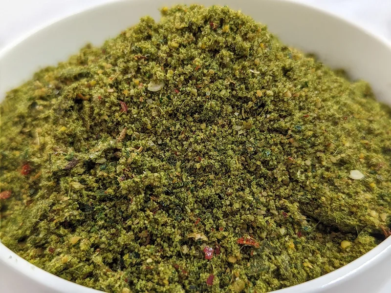 A South Indian spice blend made by tempering and grinding curry leaves with dal, red chillies, asafoetida, tamarind, and aromatics. Quick-fry method preserves the pungent, citrusy character of fresh curry leaves while building depth from toasted coriander, cumin, and garlic. Coarse texture works as a rice seasoning or condiment for idli and dosa.