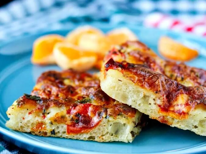 Easy Focaccia-Style Tomato Pizza with Fresh Mozzarella