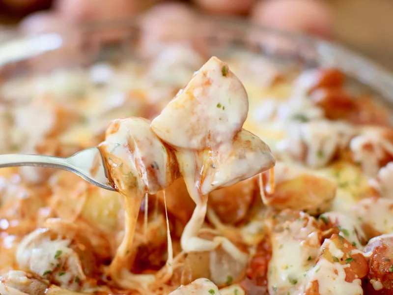 Let the dish cool for a minute after the final heating as the cheese and sauce will be extremely hot.