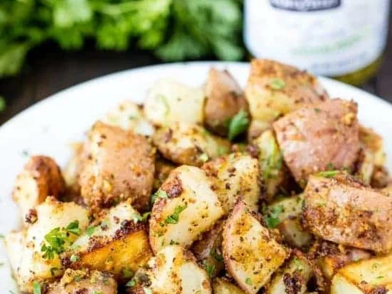 Roasted red potatoes combine the bright herbaceous punch of basil pesto with sharp parmesan cheese and buttery richness in a simple 30-minute side dish. The potatoes develop crispy edges while staying tender inside, making them ideal for weeknight dinners alongside roasted chicken or grilled fish. What sets this version apart is the direct toss method with pesto—no extra oil needed—which coats each potato quarter evenly for maximum flavor in every bite. The combination of fresh parmesan, melted butter, and fresh parsley garnish creates layers of savory depth that enhance humble potatoes beyond basic roasted vegetables. Perfect for family meals, casual entertaining, or meal prep, this dish works year-round and requires minimal prep work.