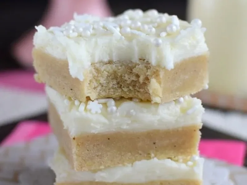 Soft, cake-like bars infused with eggnog and rum extract, baked until just set, then topped with a creamy eggnog-rum frosting and festive sprinkles. A holiday treat that captures traditional eggnog flavors in convenient bar form.