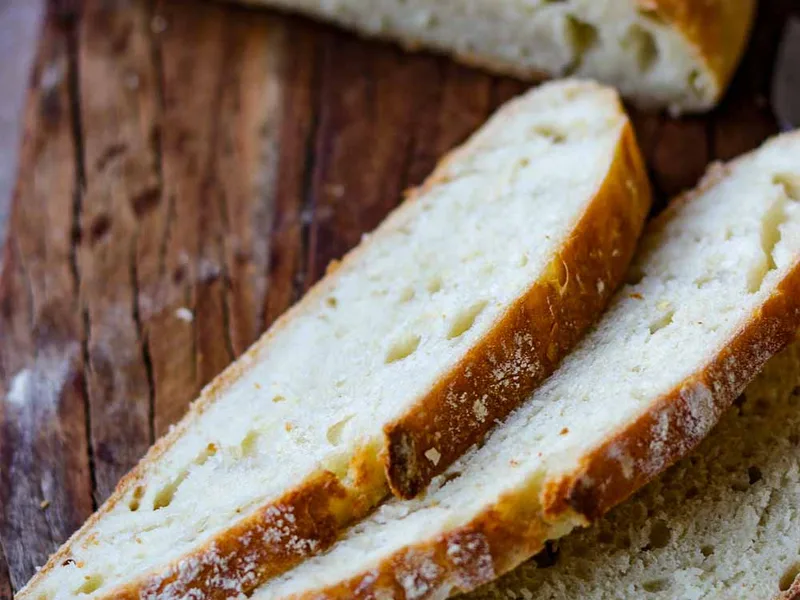 German-style no-knead bread using minimal ingredients and long cold fermentation. Mix flour, water, salt, and yeast overnight at room temperature, then shape and bake covered then uncovered in a Dutch oven until golden. Produces a soft, non-sticky crumb with minimal handling.