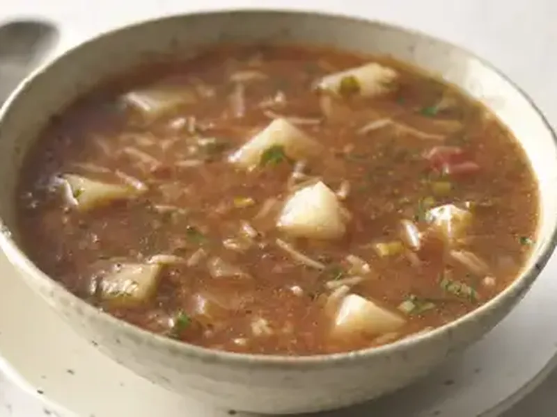 A hearty, rustic soup combining tender potatoes and fluffy white rice in a vibrant fire-roasted tomato broth. The garlic and onion base adds depth while fresh parsley and green onions brighten each spoonful. Perfect for cold weeknight dinners or casual family meals, this comforting soup offers satisfying substance with minimal effort. The fire-roasted tomatoes provide a subtle smokiness that sets this version apart from basic vegetable soups.