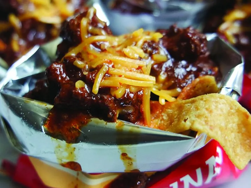 Chili keeps refrigerated up to 4 days. Do not store assembled Frito pie.