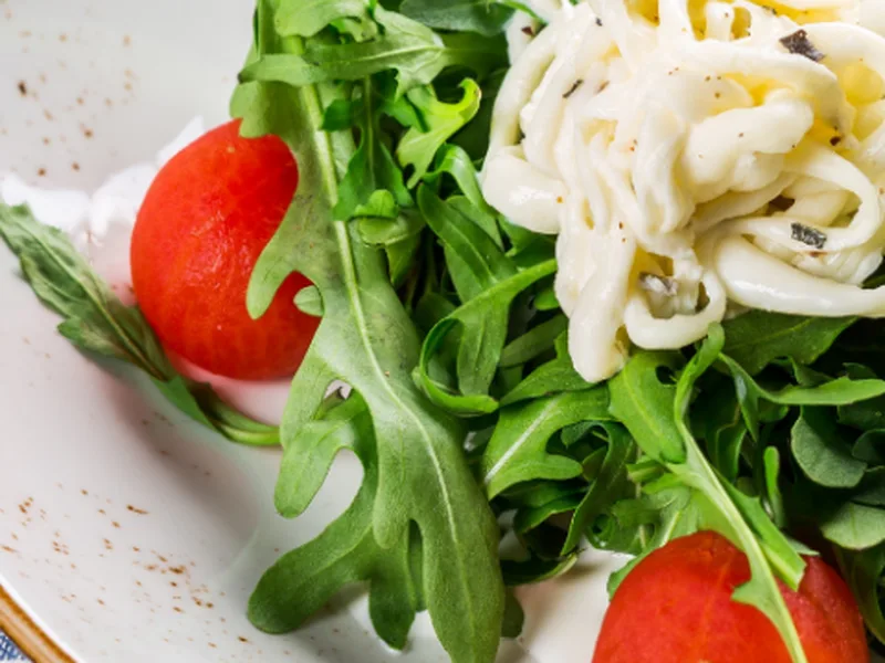Do not use fully ripe or red tomatoes; they will become mushy and fall apart.