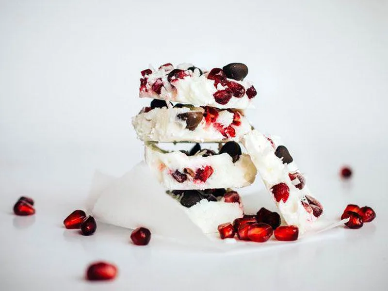 Frozen Yogurt Bark: Pomegranate, Dark Chocolate & Coconut