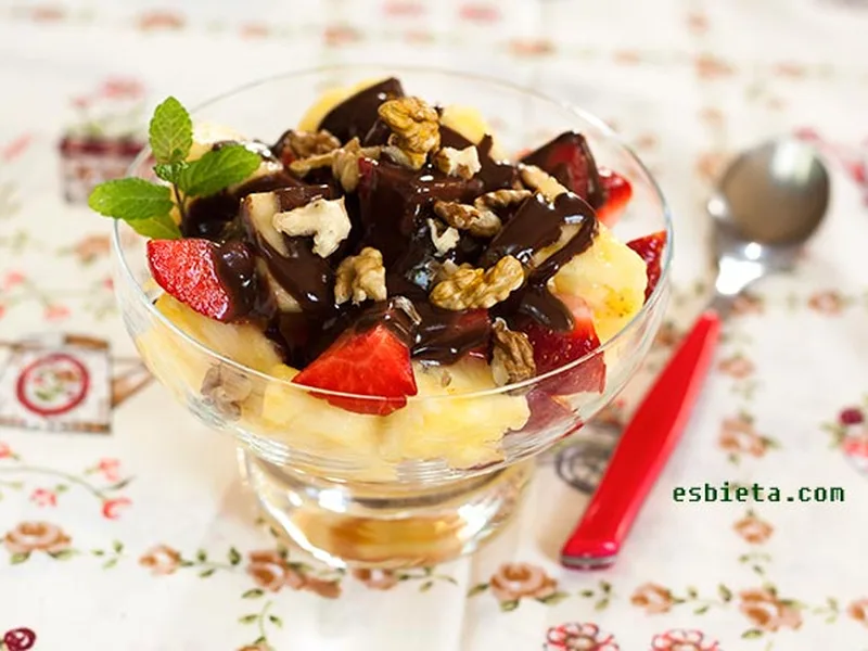Fruit with Chocolate Sauce and Nuts