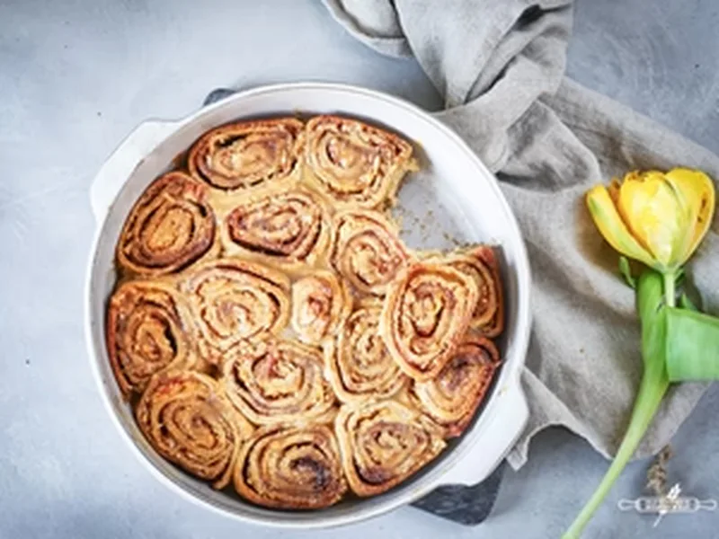 These gluten-free apple cinnamon rolls deliver soft, pillowy texture using cassava flour, ground almonds, and xanthan gum to replace wheat. The dough rises twice for exceptional fluffiness, then wraps around a filling of brown sugar, cinnamon, and fresh grated apple. What makes this version special is the combination of psyllium husk and apple cider vinegar, which adds moisture and structure that gluten-free doughs typically lack. The rolls develop a tender crumb with subtle fruity sweetness from the apple, balanced by warm spice. Make these for weekend breakfasts, special brunches, or when you need impressive pastries that work for celiac or gluten-sensitive diets. The glaze of icing sugar, cream, and butter finishes them with elegant sweetness. This recipe transforms traditionally wheat-dependent pastry into an accessible, naturally flavored treat.