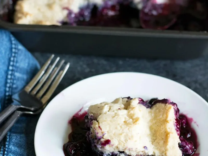 A naturally dairy-free blueberry cobbler with a tender gluten-free biscuit topping. Fresh blueberries are tossed with lemon juice and tapioca starch to create a jammy filling, then topped with a simple vanilla batter that bakes into a golden, crumbly crust. Perfect for those avoiding gluten and dairy.