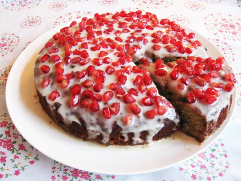A naturally grain-free pomegranate and pistachio cake made with dairy-free margarine and yogurt, delivering a tender crumb studded with tart pomegranate seeds and nutty pistachios. The combination of rice, gram, and maize flours creates a light, fluffy texture that rivals traditional wheat-based cakes. Bright pomegranate juice runs through the batter, while a simple honey-yogurt topping adds richness without dairy. Perfect for those avoiding gluten or dairy, this cake works for afternoon tea, celebrations, or anyone seeking a naturally inclusive dessert. The pomegranate garnish and pistachio flecks make it visually stunning. This version balances fruity tartness with earthy nuts, avoiding heavy spices or dense crumbs common in gluten-free baking.