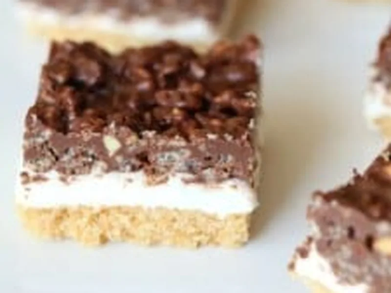 No-bake bars layering Ritz cracker crust with marshmallow fluff, topped by Rice Krispies bound in melted chocolate and peanut butter. Sweet and salty with crispy, gooey textures that chill to set. Quick assembly, minimal equipment.
