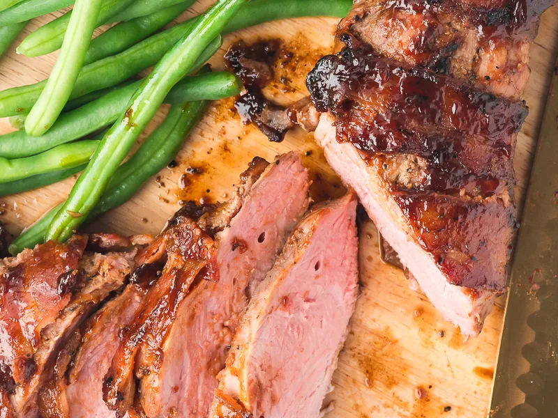 Slice against the grain and serve with additional glaze on the side. Pairs well with grilled vegetables or coleslaw.