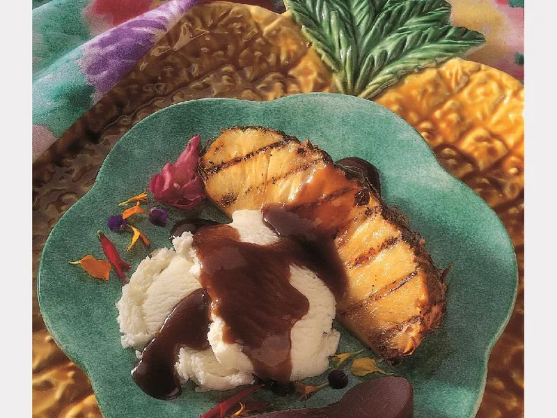 Serve warm pineapple on plates with a scoop of vanilla ice cream alongside. Pour remaining warm sauce over top. Pairs well with grilled meats at summer dinners or as standalone dessert.