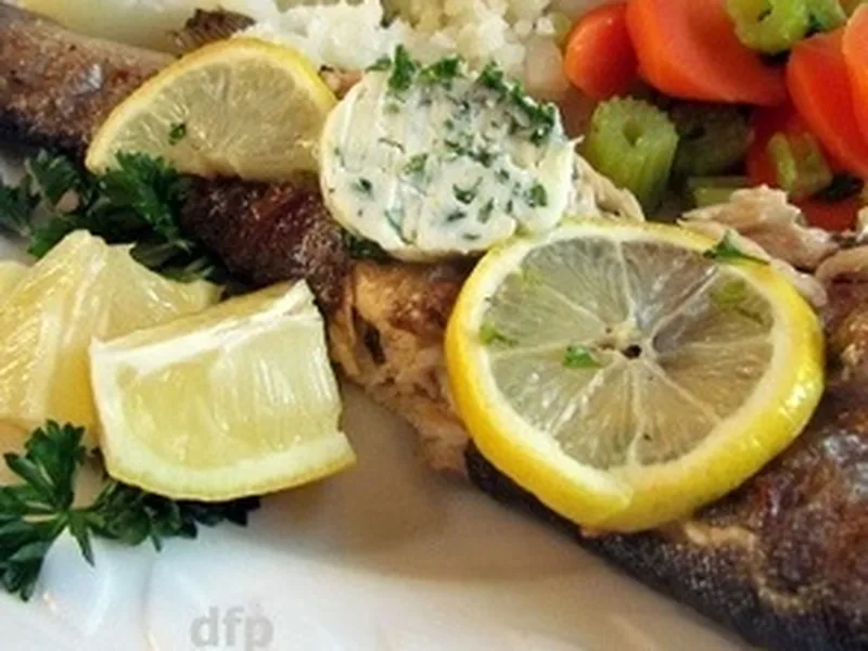 Whole grilled trout stuffed with fresh herbs and lemon, topped with compound butter infused with bright citrus and parsley. The fish cooks skin-on over medium-high heat until flaky, creating a crispy exterior while the herb-lemon filling steams inside. Serve as an elegant weeknight dinner or special occasion entrée for two. This version showcases the simplicity of quality ingredients: fresh herb-stuffed cavity, compound butter finish, and minimal seasoning let the trout's delicate flavor shine.