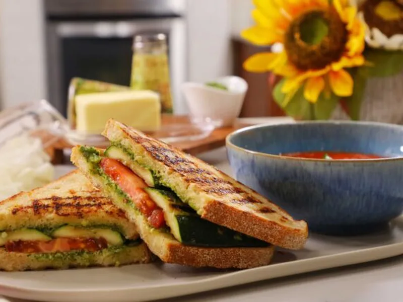 Grilled Zucchini Pesto Sandwich and Creamy Tomato Soup