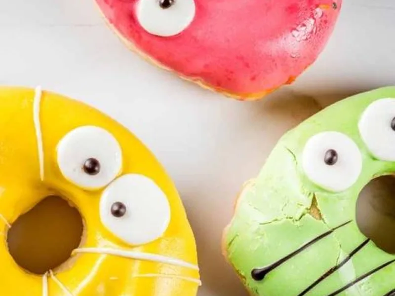 Do not apply candy eyes to warm donuts to avoid melting or sliding off.