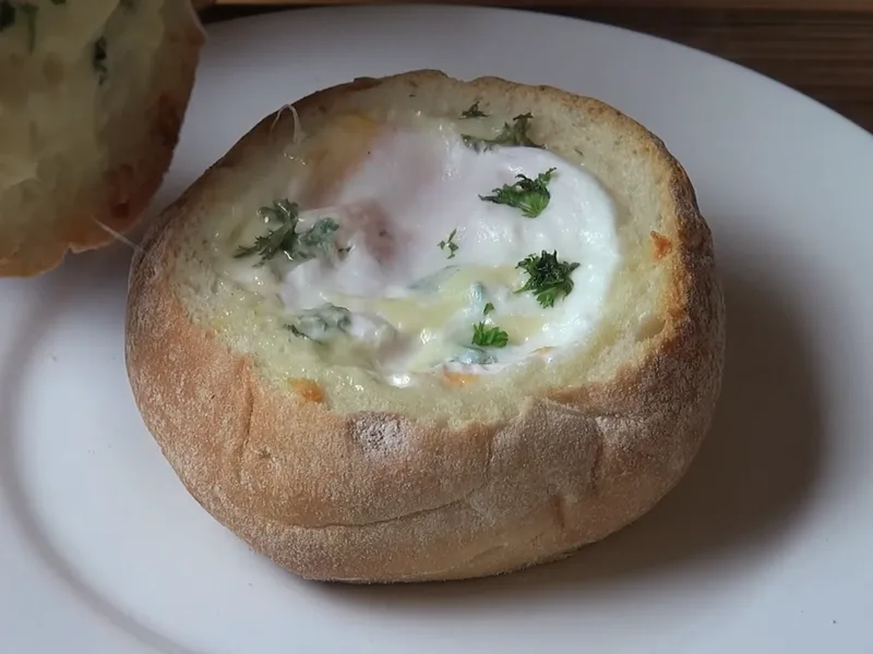 Hollowed bread rolls filled with ham, a cracked egg, cheese, and parsley, then wrapped in foil and baked until the egg reaches your preferred doneness. A handheld breakfast that's crispy outside and custardy within, ready in under 20 minutes.