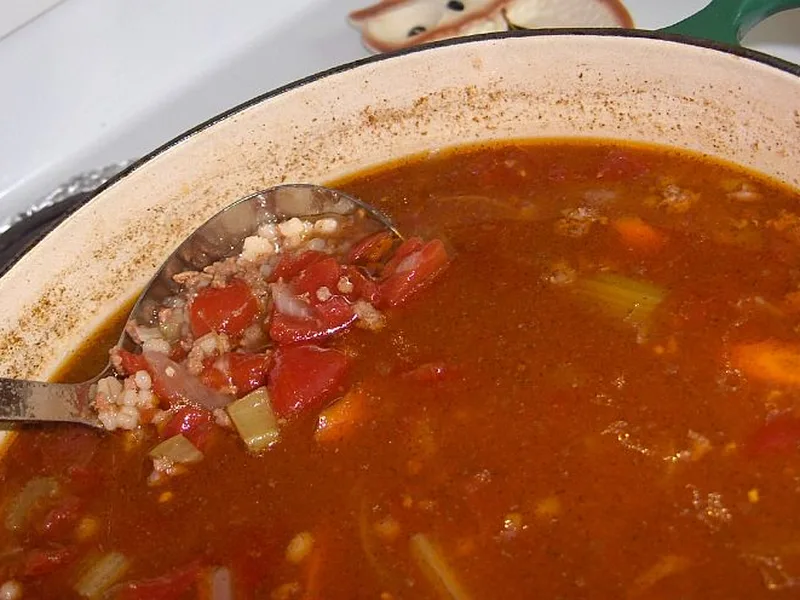 Hearty one-pot soup combining ground beef, pearl barley, and garden vegetables in a savory beef broth base. This rustic, stick-to-your-ribs bowl delivers deep umami from the tomatoes and herbs, with tender barley adding nutty texture and substance. Perfect for weeknight dinners, meal prep, or feeding a crowd affordably. The long simmer allows flavors to meld while barley absorbs the broth, creating a naturally thickened, comforting soup that tastes even better the next day.