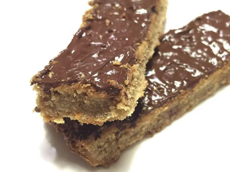 Rustic no-bake oat bars layered with melted dark chocolate. Combines rolled oats, peanut butter, banana, and crushed hazelnuts, bound with egg and bound with sweetener. Baked until firm, then topped with dark chocolate and cut into chewy bars. A simple, whole-grain treat.