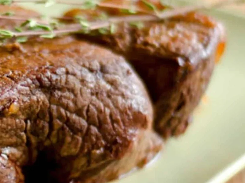 A classic Sunday roast featuring tender top sirloin seared to golden perfection and slow-roasted with aromatic thyme, garlic, and red wine. The combination of clarified butter or beef tallow creates a rich, flavorful crust while keeping the interior juicy and pink. Perfect for family gatherings or special occasions, this traditional preparation produces its own savory pan sauce from the rendered cooking juices and wine reduction.