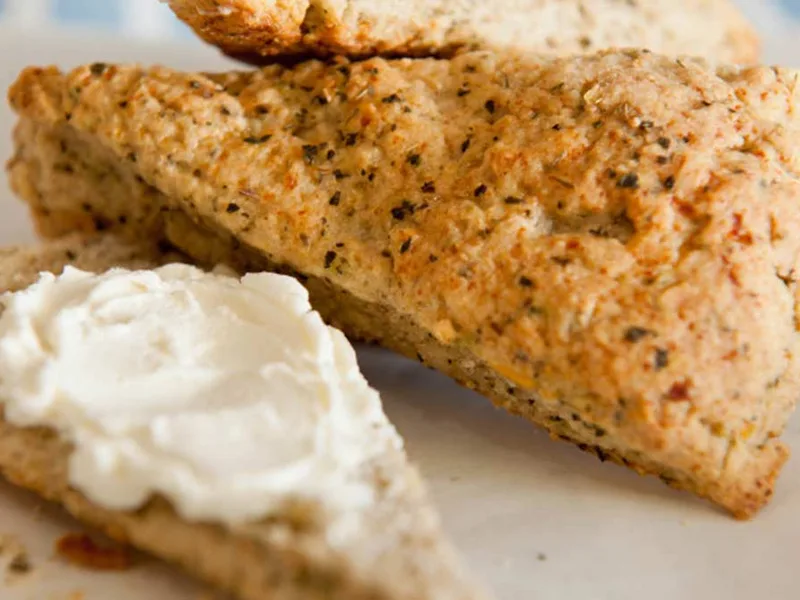 This rustic pan bread combines whole barley and all-purpose flour with creamy cottage cheese for a tender, moist crumb that stays fresh for days. Mixed dried herbs—oregano, thyme, basil, and rosemary—perfume each wedge with subtle earthiness. The cottage cheese replaces butter, delivering protein and moisture without heaviness, while canola oil ensures a golden, slightly crispy exterior. Quick to mix and bake in under an hour, this bread suits weeknight dinners, casual entertaining, or lunchbox packing. The wedge shape makes serving effortless. Unlike yeast breads, this quick bread requires no rising time, making it ideal for those seeking homemade bread without lengthy prep. Its hearty barley flour base and herb profile set it apart from standard quick breads, offering deeper flavor and satisfying texture perfect alongside soups, stews, or salads.