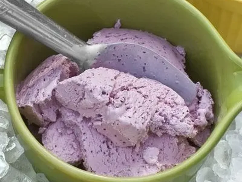 Serve in chilled bowls or cones. Pairs well with warm huckleberry pie, butter cake, vanilla wafers, or caramel sauce. A squeeze of fresh lemon brightens the berry flavor.