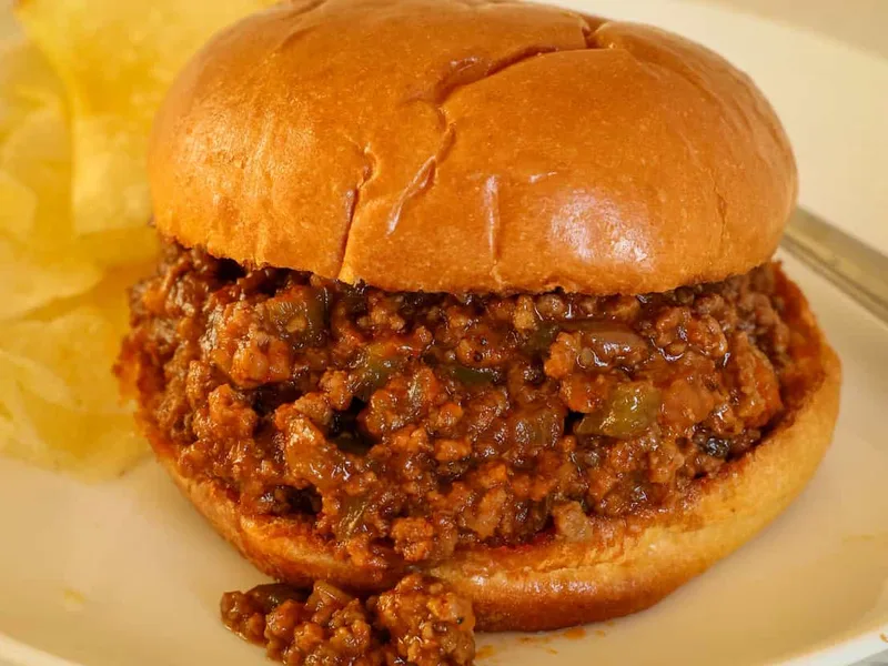 Classic American comfort food featuring seasoned ground beef simmered with spicy barbecue sauce, ketchup, and tangy condiments. Quick weeknight meal with caramelized onions and peppers, finished on soft brioche or hamburger buns for maximum flavor absorption.