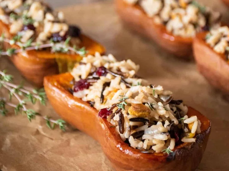 Honeynut Squash with Cranberry Wild Rice Pilaf