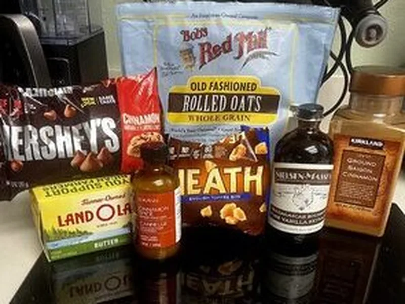 These chewy oatmeal blondies pack a triple punch of cinnamon flavor from ground cinnamon, cinnamon extract, and cinnamon chips. The combination of brown sugar and butter creates a rich, caramelized base while quick oats add texture and heartiness. Toffee bits provide delightful pockets of buttery crunch throughout. Perfect for potlucks, bake sales, or when you want a comforting dessert that's easier than cookies but more interesting than plain bars. The dense, sticky batter bakes into golden bars with slightly crisp edges and a tender center.