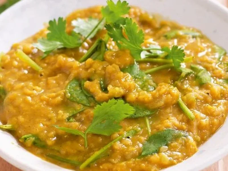 Creamy red lentil dahl with sautéed spiced onions, tomato, and creamed corn. Lentils simmer until tender, then combine with a fragrant tempering of ghee, chilli oil, ginger, and onions. Finished with lemon juice and adjustable seasoning. Serve with rice and naan.