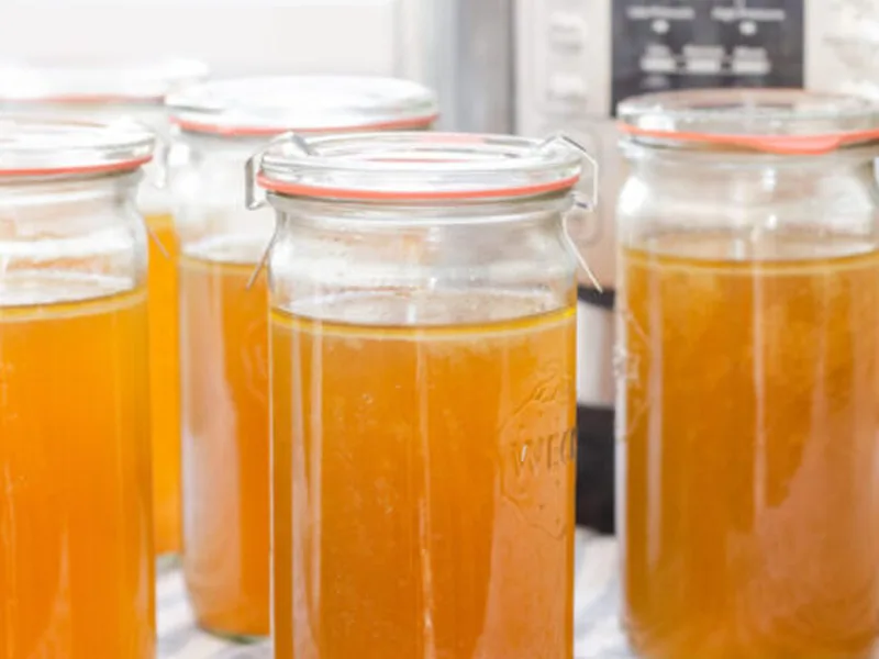 Rich, collagen-infused broth made in a pressure cooker with chicken bones and aromatics. High-pressure cooking extracts deep flavor and nutrients in just two hours. Optional vegetables add complexity. Strains cleanly for a clear, savory base for soups, sauces, and cooking grains.