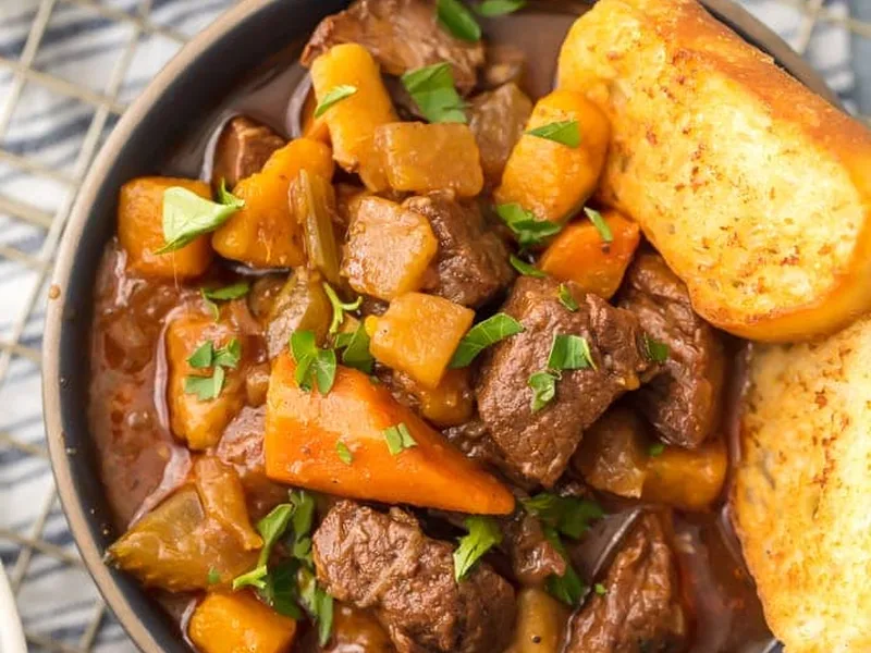 If thickening desired, stir cornstarch mixture into hot stew until thickened.