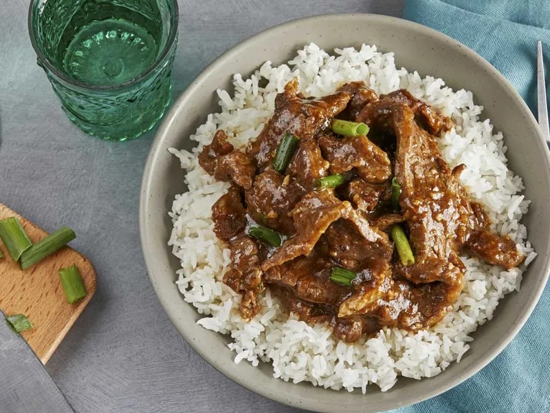 Tender flank steak coated in cornstarch and seared, then pressure-cooked in a savory-sweet soy and brown sugar glaze with vegetables. This streamlined version uses a seasoning packet and quick-release cooking to deliver restaurant-style Mongolian beef in under 30 minutes. The caramelized sauce clings to the beef while green onions add fresh brightness. Serve over rice for a weeknight dinner that feels restaurant-quality without the takeout wait.