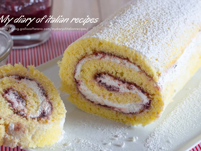 Jam and Cream Sponge Cake Roll with Blueberry