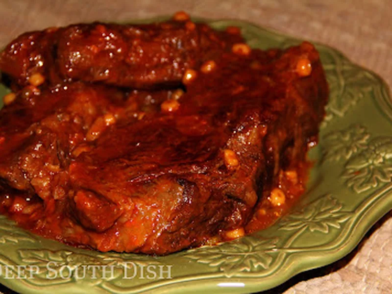 A hearty braised chuck roast that transforms into fork-tender comfort food through slow oven cooking in a rich gravy made from condensed vegetable soup, ketchup, and tangy seasonings. The pot roast develops deep flavors while creating its own savory pan gravy perfect for spooning over creamed potatoes. This satisfying dish brings together classic American flavors in an easy one-pot meal that's ideal for Sunday dinners or cold weather gatherings when you want something warming and substantial.