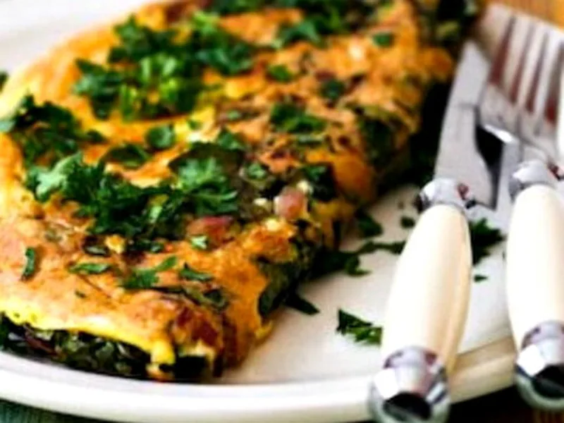 A hearty omelette packed with wilted kale, sautéed onions, and melted white cheese. The kale adds earthy flavor and nutrients while the cheese provides richness. Perfect for a satisfying breakfast or light dinner when you want something more substantial than a basic omelette. The key is wilting the kale properly before adding the eggs to prevent a watery result.
