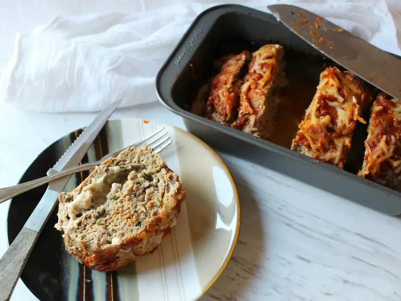A ketogenic-friendly twist on classic meatloaf featuring lean ground turkey packed with parmesan and stuffed with melted mozzarella cheese. The loaf is seasoned with aromatic spices like paprika and mustard powder, then topped with marinara sauce for a satisfying low-carb dinner. Perfect for families following keto diets or anyone seeking a protein-rich meal that delivers comfort food satisfaction without the carbs. The cheese center creates a delightful surprise when sliced, making this an impressive yet simple weeknight dinner option.